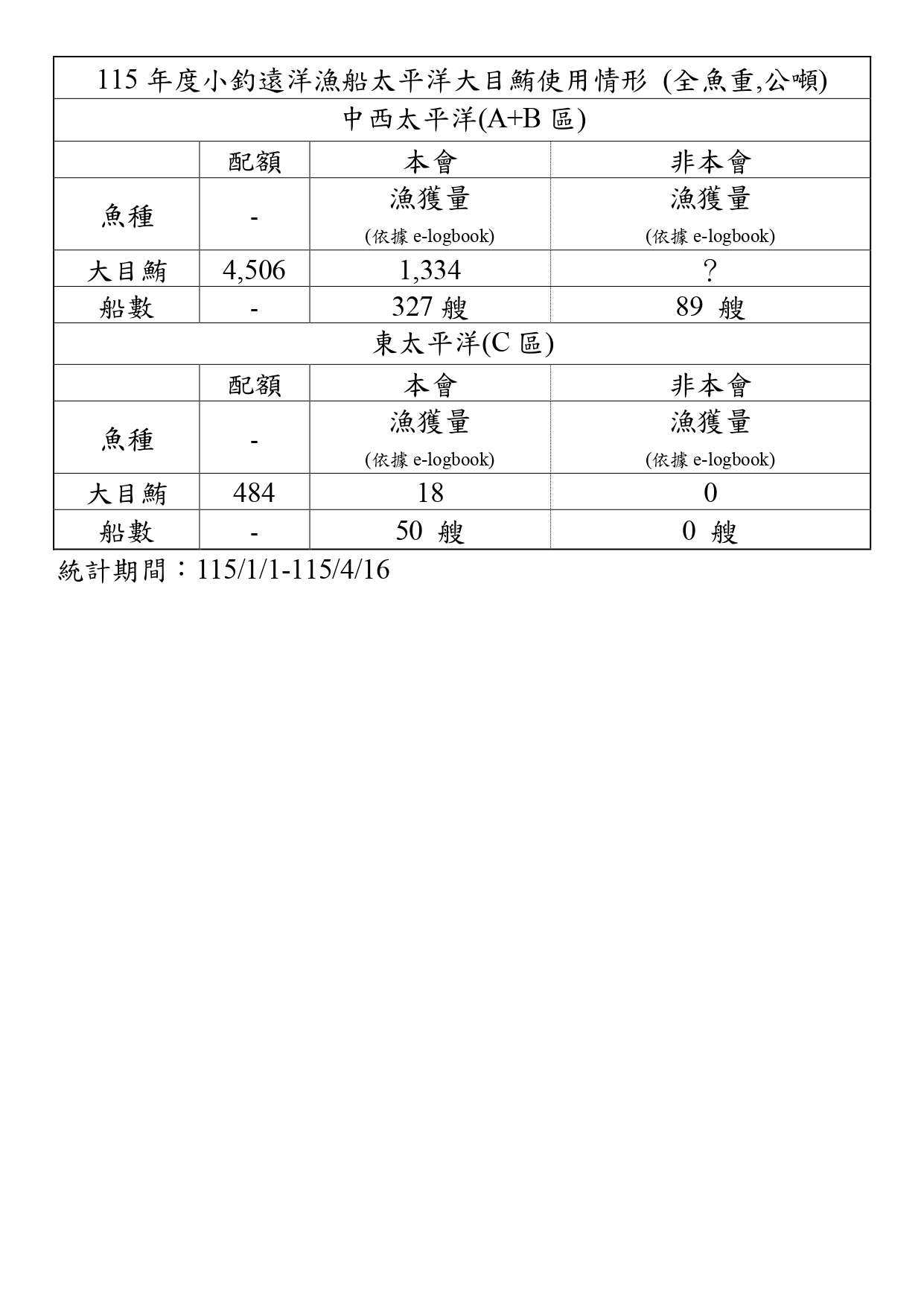 有關目前太平洋大目鮪配額申請及使用情況,本會將定期更新統計漁獲回報情況,提供會員參考。
